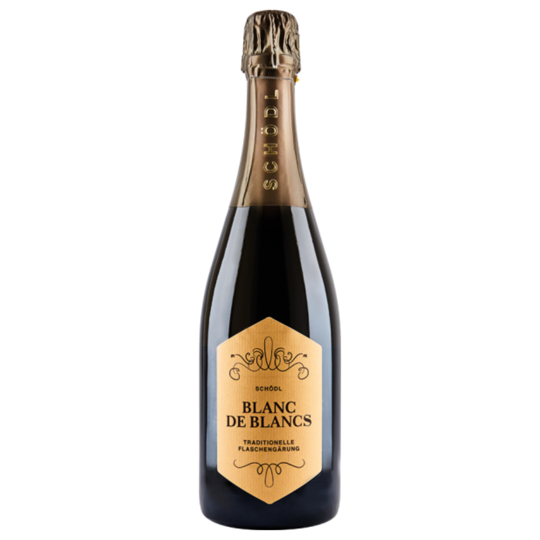只能說奧地利的 Chardonnay 在 Schödl 手上就是這麼馥郁清新、銳利又性感:90% Chardonnay + 10% Pinot Blanc,氣泡細緻綿密,青蘋果、黃梨、杏桃與白花先鋪底,接著 brioche 的酵母奶油香輕輕浮起;入口酸度像刀鋒般俐落,尾段高級海鹽礦物感把你拉回來——乾淨、上癮、想一直喝。釀造上先在不鏽鋼槽約 10 個月,再於大桶浸渣約 24–30 個月拉出更深的層次;那一點點恰到好處的微氧化,讓礦石感與極度精緻的通透果味完美融合,冷冽動人的世界級白中白氣泡。